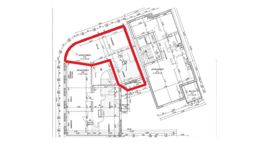 Avec une surface habitable de +/- 61,33 m2, l’appartement se compose comme suit :