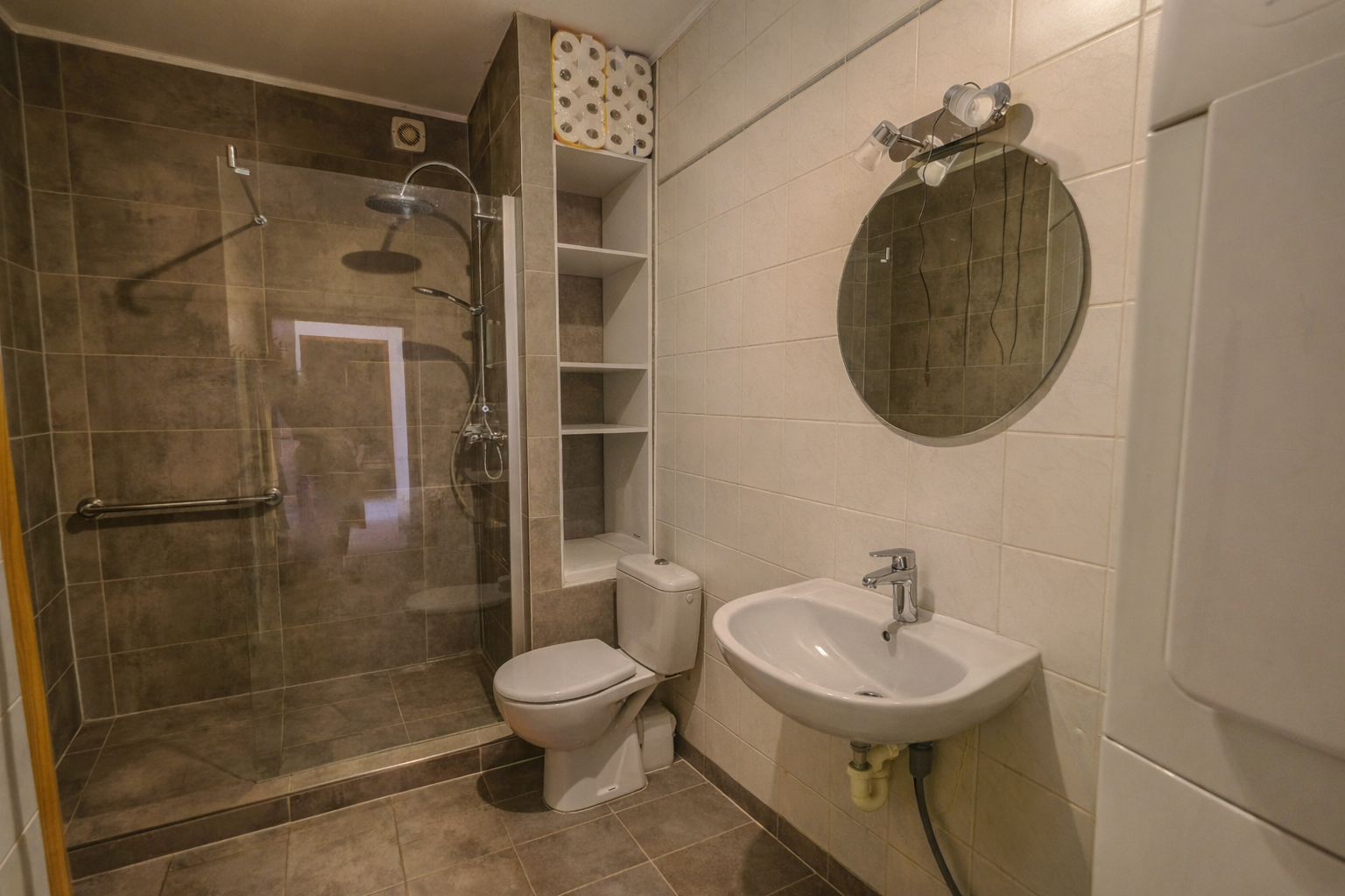 – Salle de douche avec lavabo, WC, buanderie et ventilation.