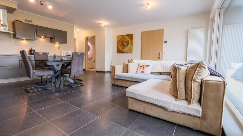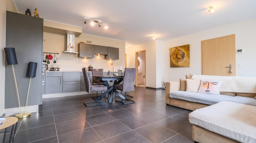 Avec une surface habitable de +/- 70 m2, l’appartement se compose comme suit :