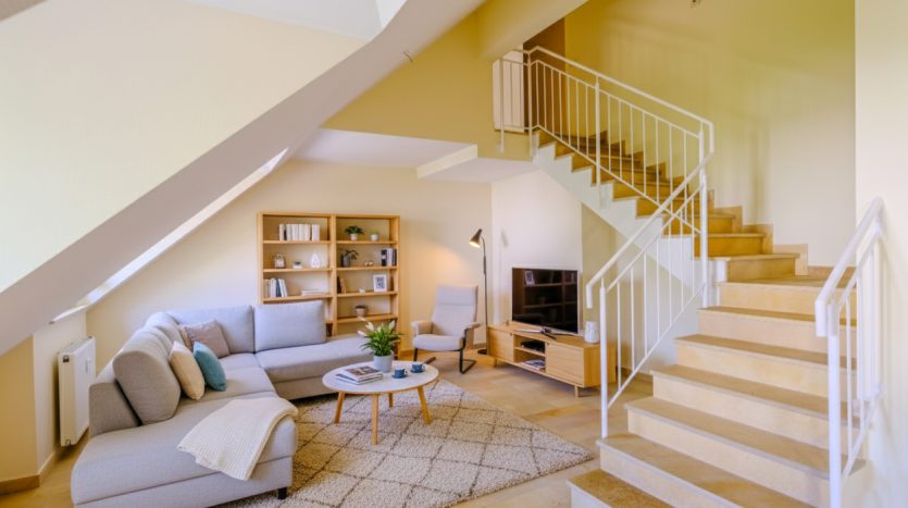 Avec une surface habitable d’environ 128 m², ce duplex lumineux et bien agencé se compose comme suit :