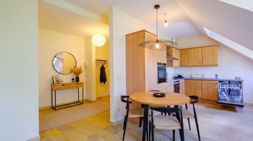 – Cuisine équipée ouverte sur un vaste living / salle à manger,
