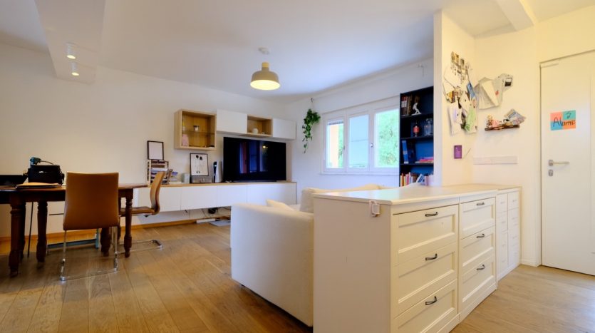 La maison est située dans un endroit extrêmement calme, entourée de nature et de seulement quelques maisons voisines. Elle offre beaucoup d’intimité ainsi qu’une atmosphère de vie agréable.
