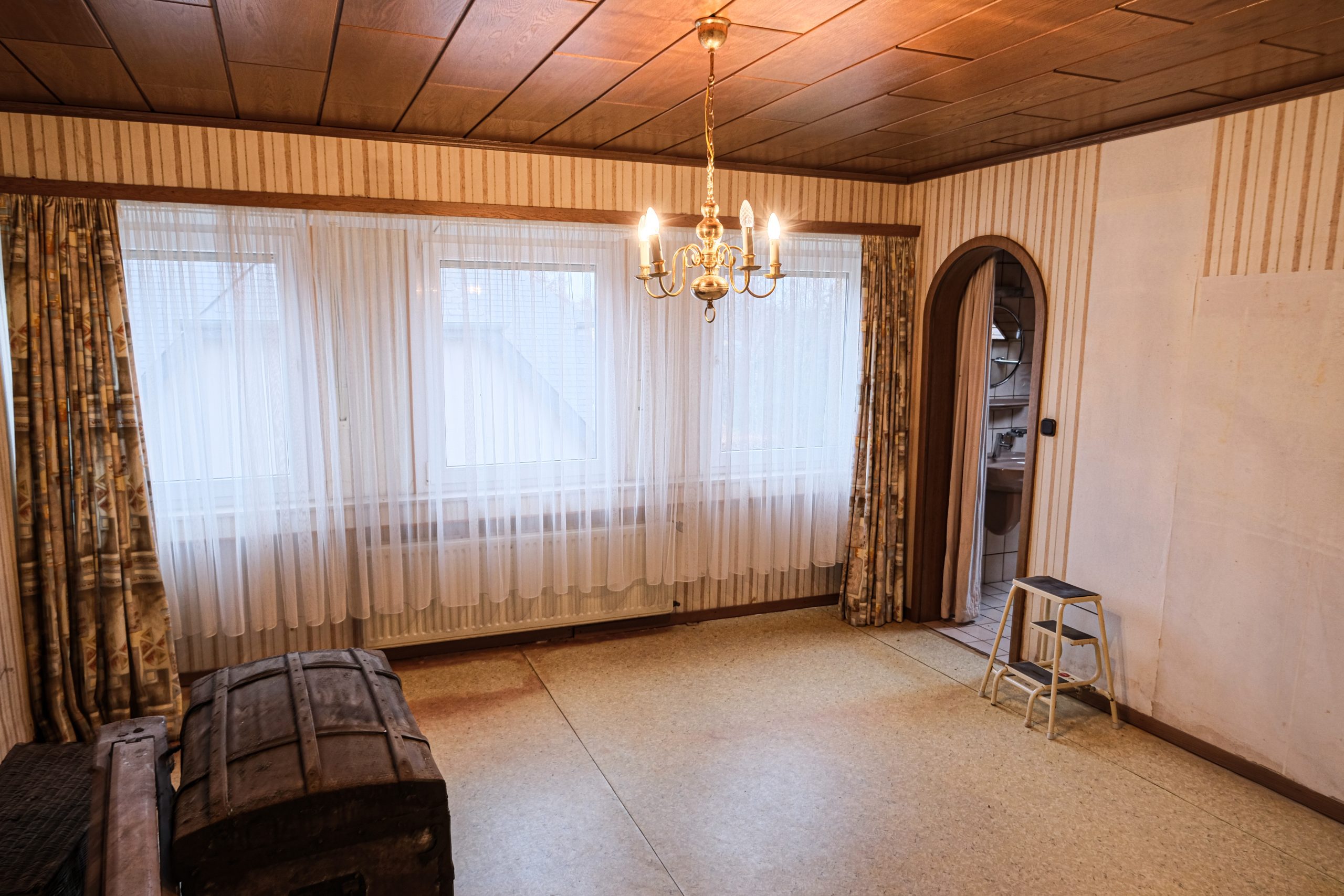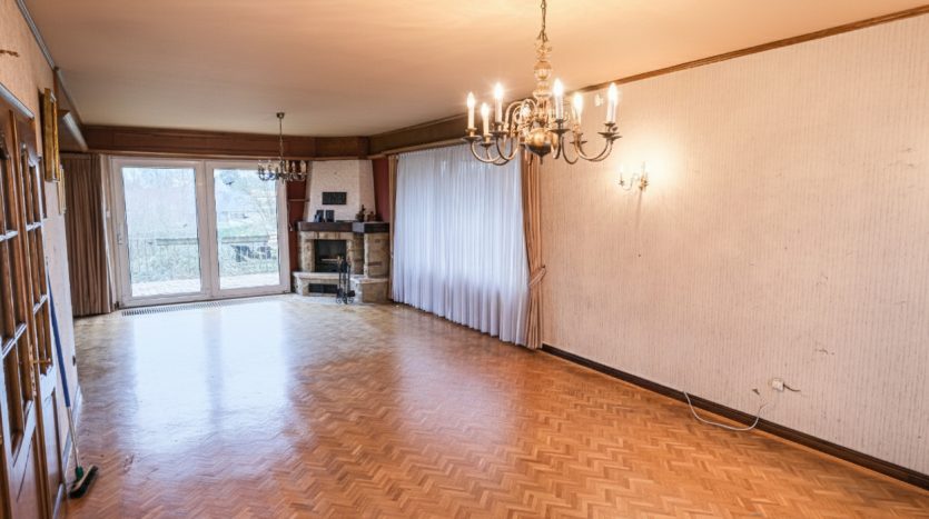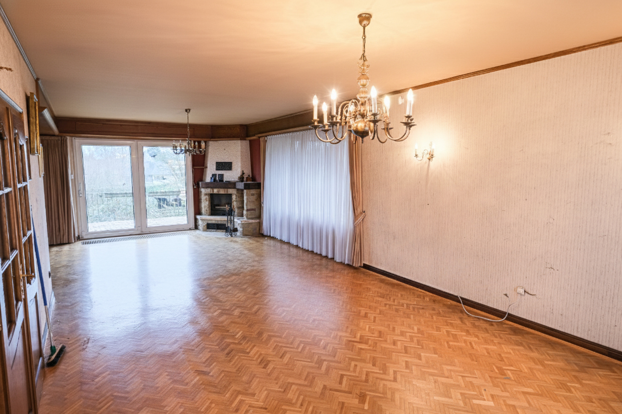 Un vaste séjour lumineux de +/- 52 m² avec cheminée au feu de bois,
