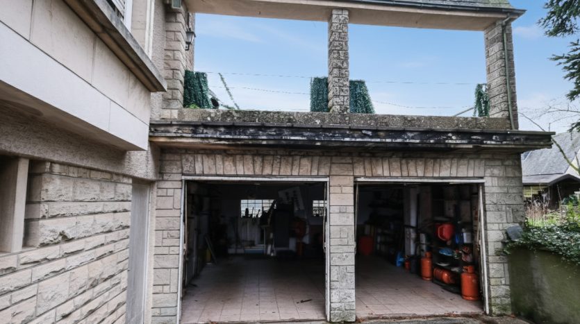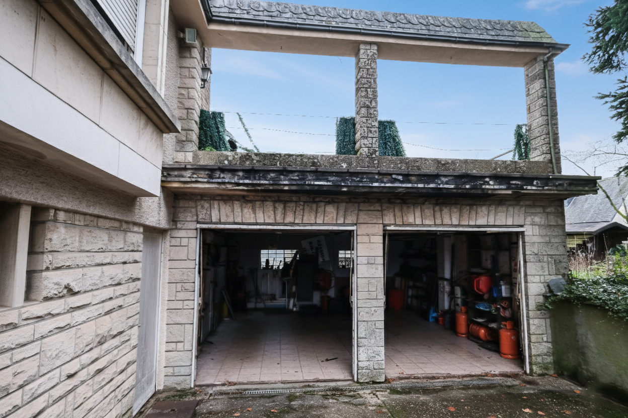 Un double garage de +/- 32 m² avec terrasse au-dessus,