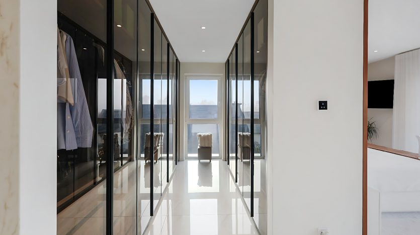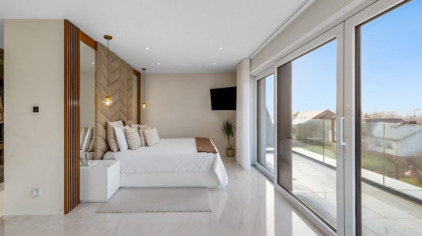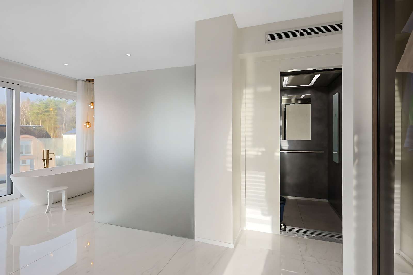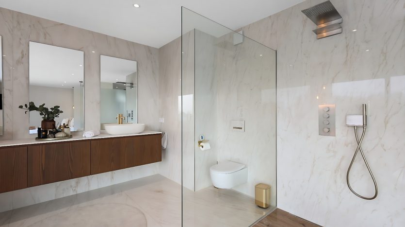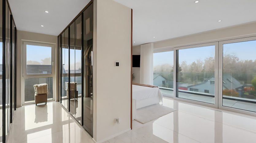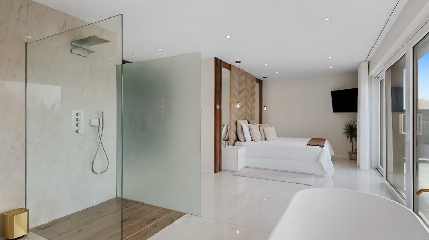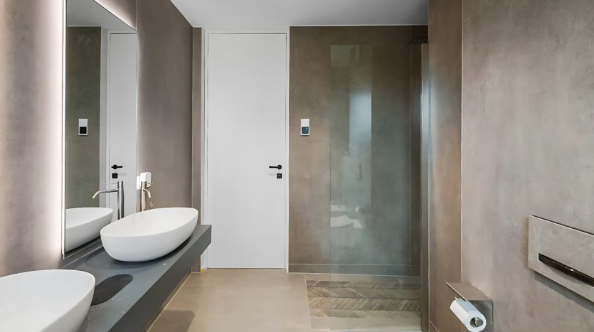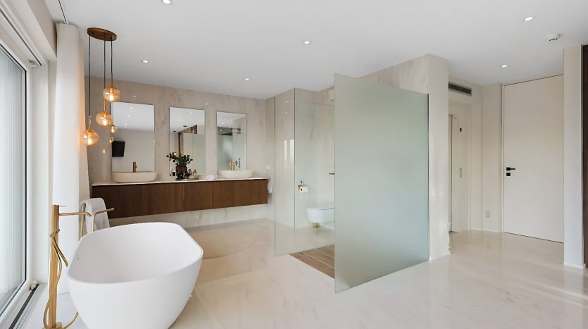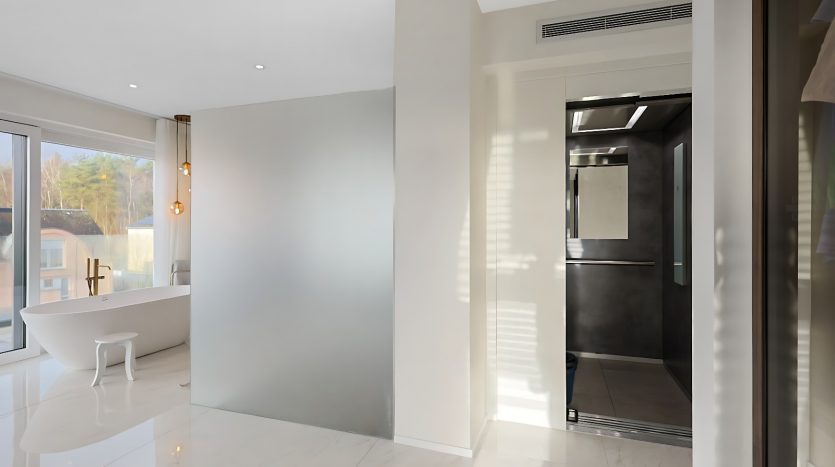 – Suite parentale d’exception avec ascenseur arrivant directement dans la chambre, grand dressing sur mesure, salle de bains privative (douche italienne ouverte, baignoire, double vasque), ainsi qu’une terrasse privée avec vue dégagée,
