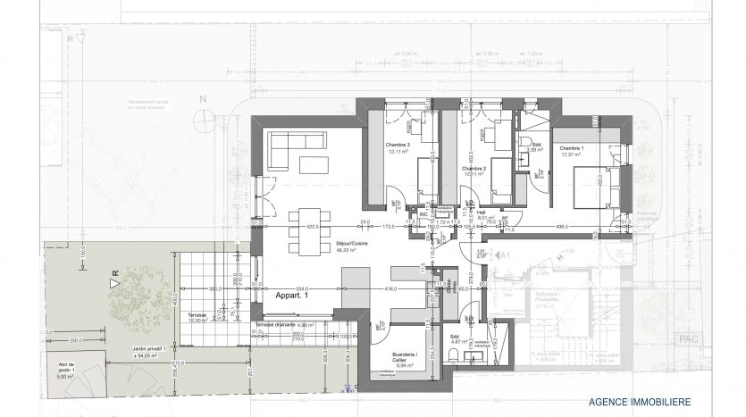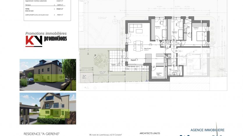 Nous vous présentons ici le Lot N°1, un très bel appartement situé en rez-de-chaussée avec jardin, offrant une surface cadastrale de +/- 123,44 m² , se composant comme suit :