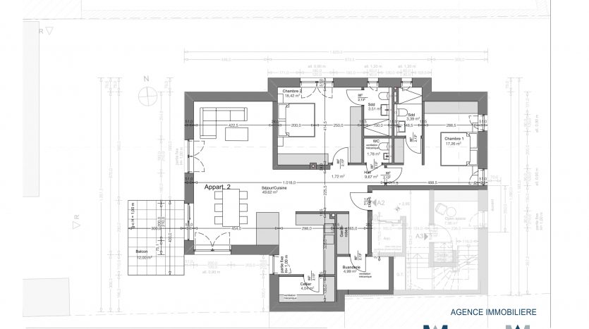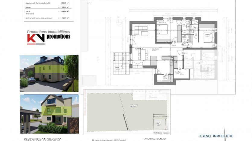 Nous vous présentons ici le Lot N°2, un magnifique appartement situé au 1er étage, offrant une surface cadastrale de +/- 121,73 m², se composant comme suit :